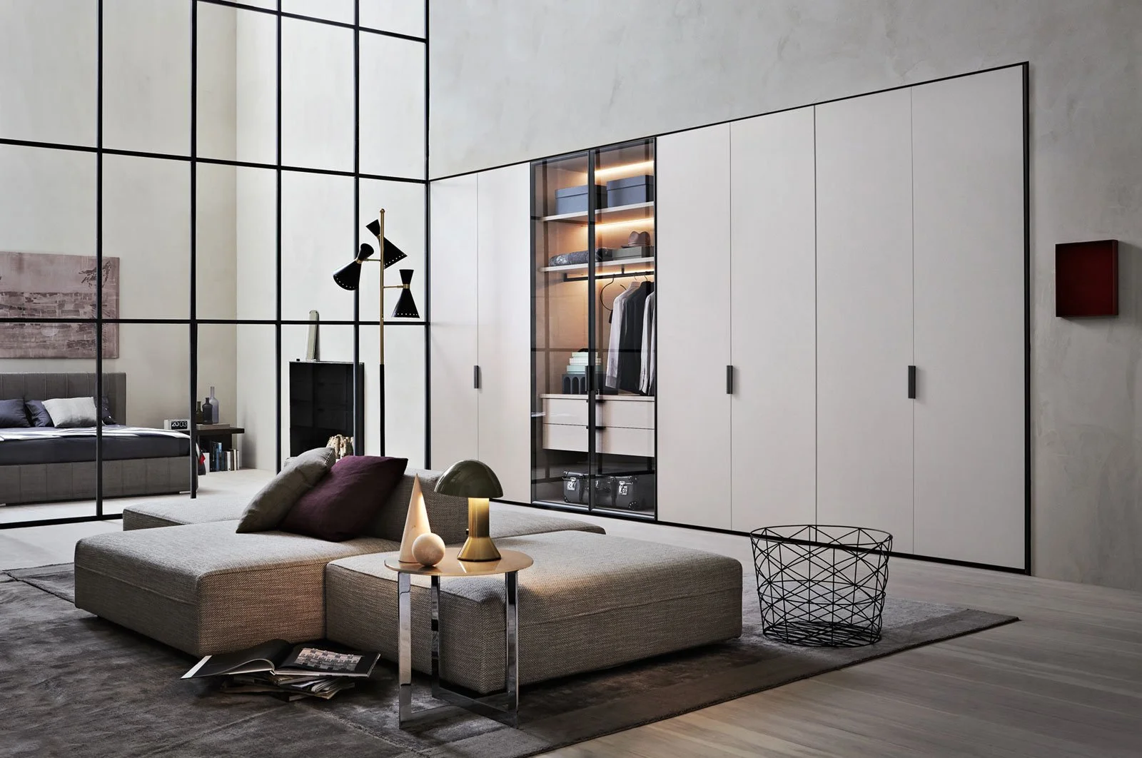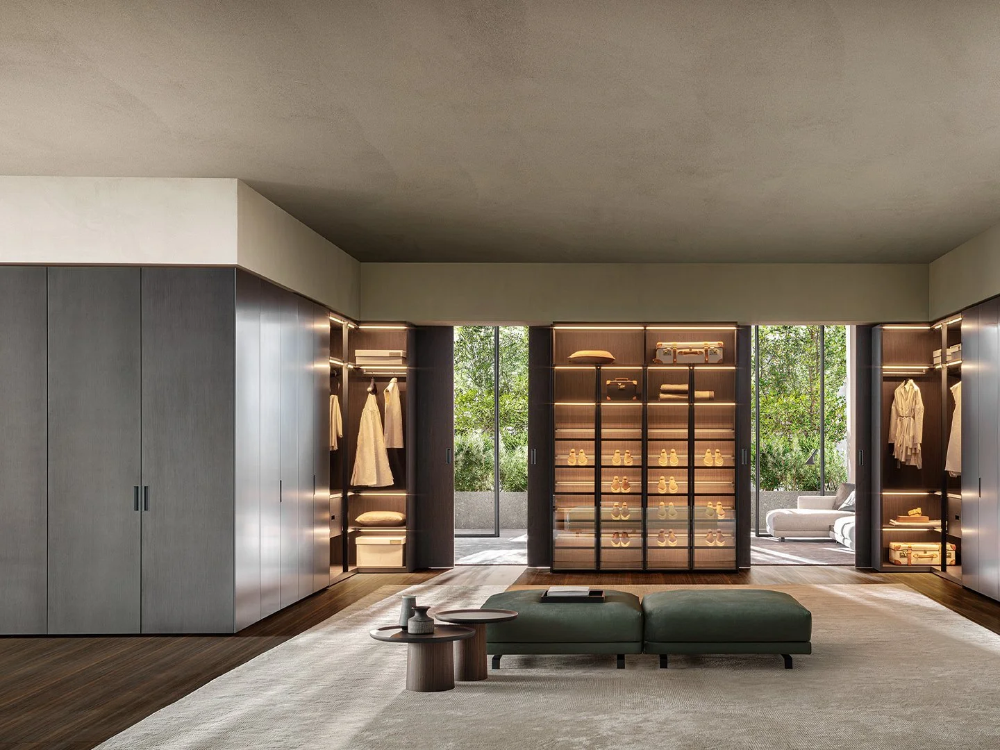 Molteni & C garderober kan tilpasses alt fra elegante walk-in løsninger til integrerte garderobesystemer med skreddersøm ned til minste detalj. Enten du ønsker å skjule eller fremheve oppbevaringen, får du løsninger som balanserer funksjonalitet med sofistikert design.
